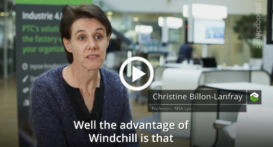 Christine Billon-lanfray, ingénieure au Pôle AIP-PRIMECA RAO, à l'INSA Lyon utilise PTC Creo et PTC Windchill sur la plateforme pédagogique du site central du Pôle AIP-PRIMECA RAO, de façon à donner plus de flexibilité aux étudiants. Ils peuvent acceder à leurs modèles 3D aussi bien depuis le site de l'école que depuis la maison.