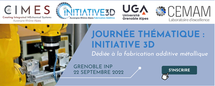 Journée Initiative 3D à Grenoble INP le 22 septembre de 9H00 à 17H30 - gratuit Publié le Date Publication lun 05/09/2022 - 12:00 Image https://initiative3d.com/actualites/journ-e-initiative-3d Inscription: https://my.weezevent.com/journee-thematique-initiative-3d